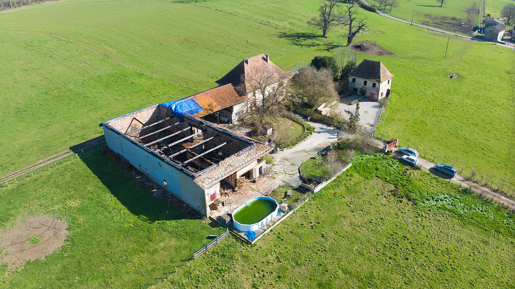 Dans le cadre d’une mission par drone, j’ai été mandaté pour réaliser un reportage photographique d’une grange récemment détruite par un incendie. L’objectif principal n’était pas de produire des images artistiques, mais de constituer un dossier de traçabilité visuelle fidèle à l’état des lieux après le sinistre.